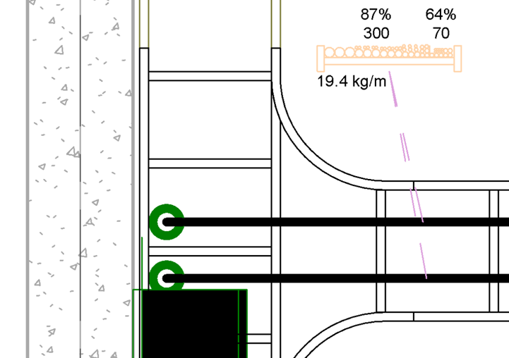 The total space available for the slots can be set according to the size of an existing cable tray in the project. In addition, you can view the filling percentage and width of each slot and the total weight per meter for the whole cable tray at the selected point in the system.